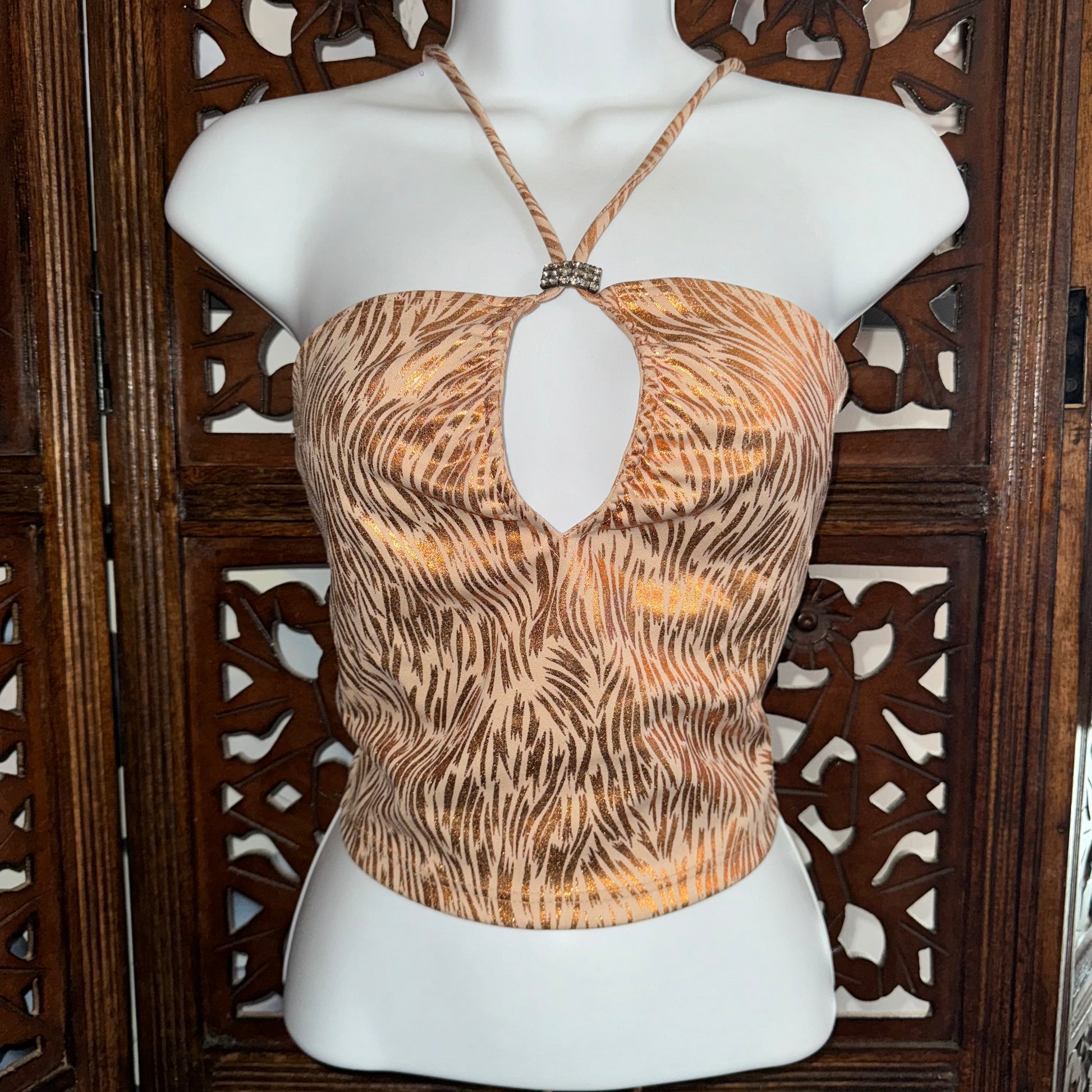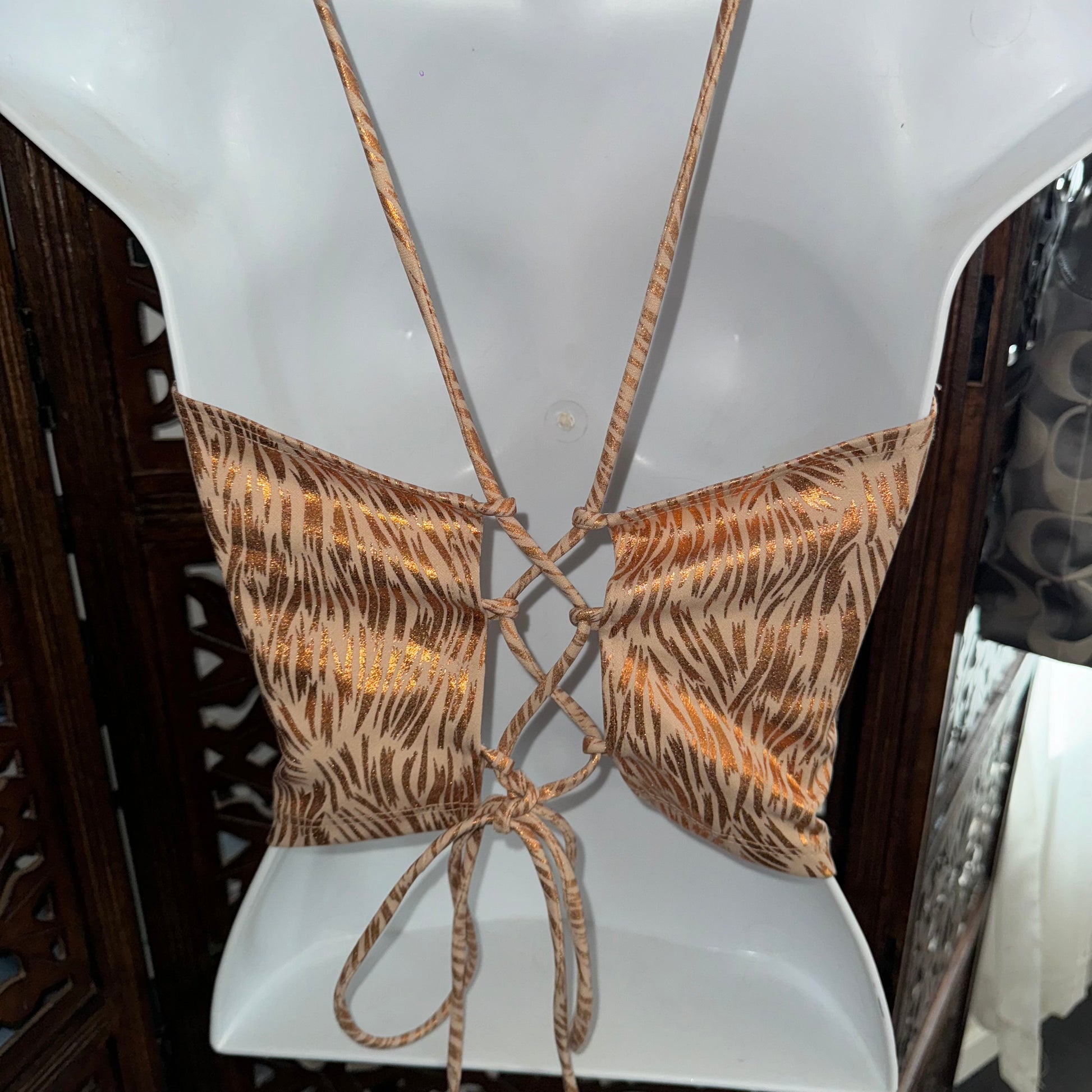 metallic animal print going out top ⭐️ size small ⭐️ ties in the back ⭐️